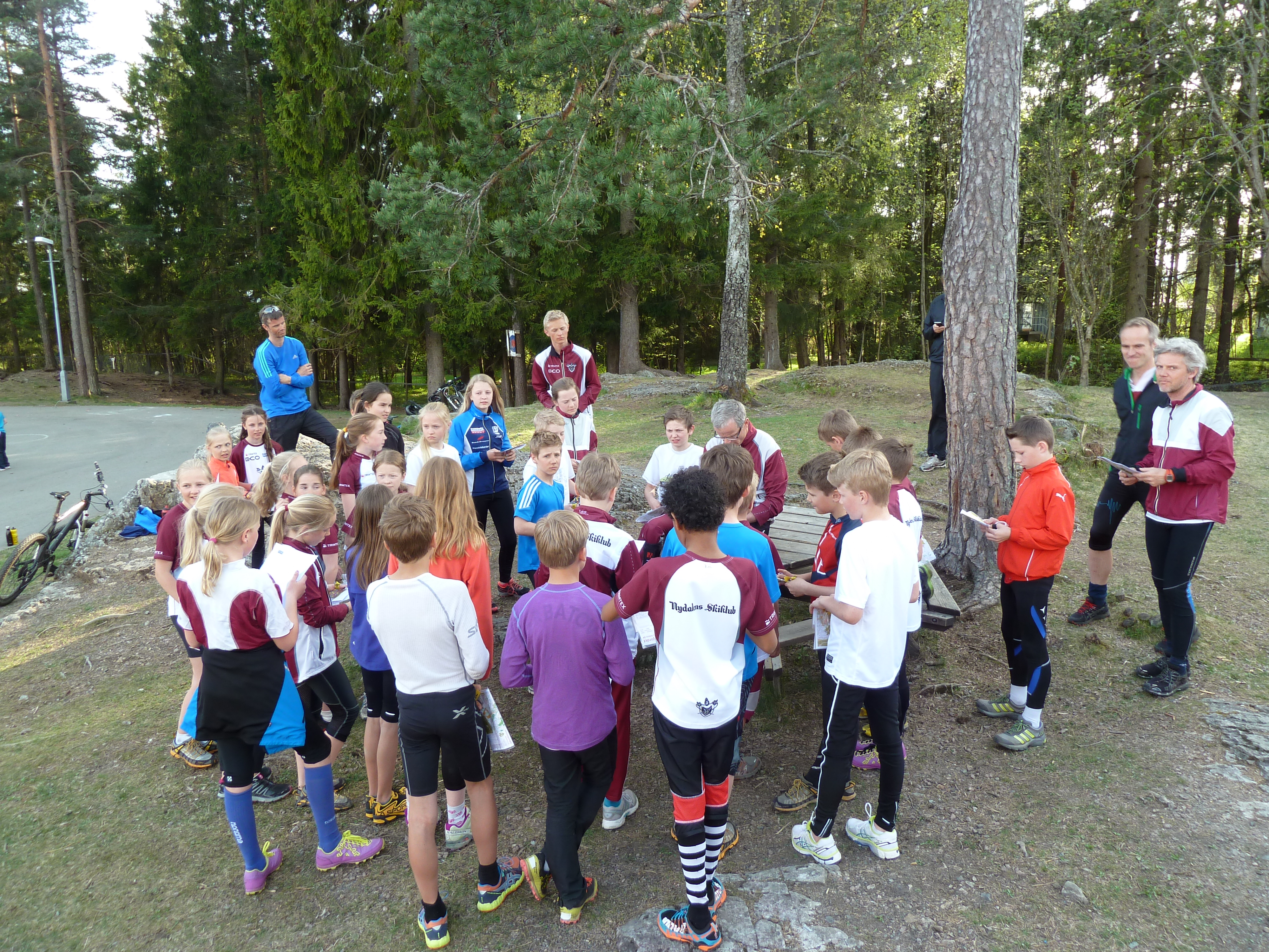 Jon Iver instruerer 2002 gruppa.I tillegg til ordinær trening var det foreldre møte , draktsalg, salg av brikker, fordeling av brukt O-tøy (det lille som var igjen), veiledning i Eventor og O-kurs for foreldre. Flere foreldre er velkomne til neste kurs 12.mai.